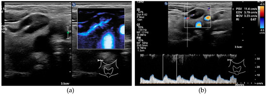 - Ying, M.; Ahuja, A.; Brook, F. Repeatability of power Doppler sonography of cervical lymph nodes. Ultrasound Med. Biol. 2002, 28, 737–744. Available online: http://www.ncbi.nlm.nih.gov/pubmed/12113786 (accessed on 26 April 2019). [CrossRef]