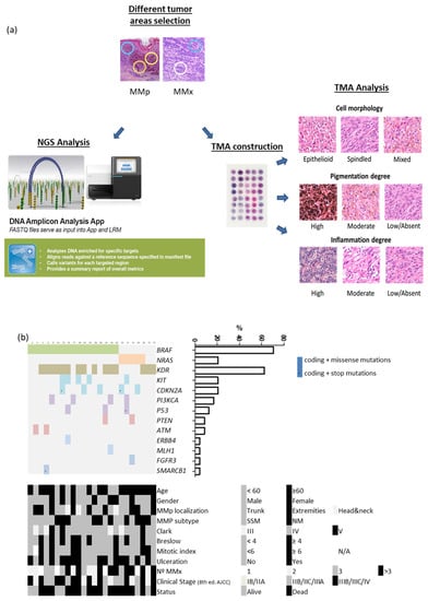 This study attempts to investigate the relationship between the diverse histophenotypic features present in different regions of MMp compared with the genetic characteristics found by NGS assay in a series of 24 patients with primary SSM or NM.