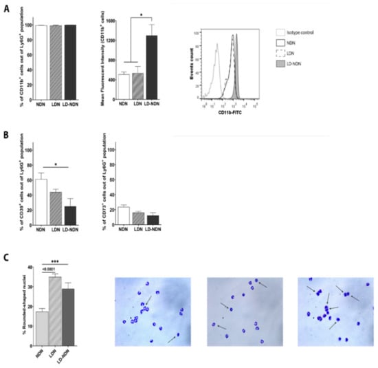 3.5. Newly Formed LD-NDN Display Phenotypic Changes and Functional Activity Similar to LDN
