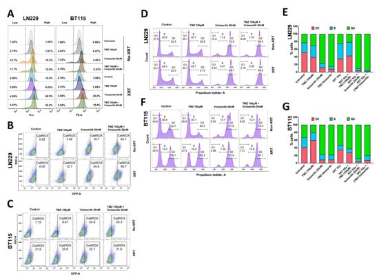 3.2. Volasertib Drives Concerted Disruption of MtMP, Activation of ROS and G2-M Arrest in GBM Cells without the Transition to the Quiescent State
