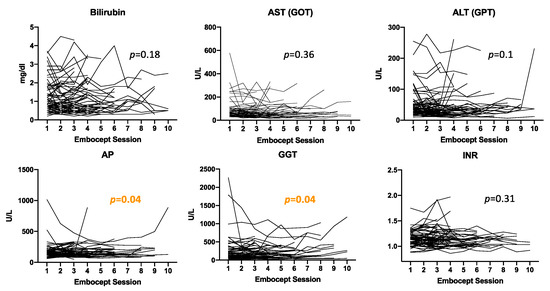 - Miksad, R.A.; Ogasawara, S.; Xia, F.; Fellous, M.; Piscaglia, F. Liver function changes after transarterial chemoembolization in US hepatocellular carcinoma patients: The LiverT study. BMC Cancer 2019, 19, 759. [Google Scholar] [CrossRef] [PubMed] [Green Version]