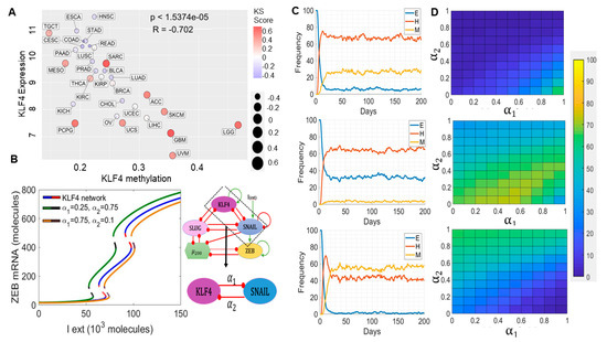 The following are available online at https://www.mdpi.com/article/10.3390/cancers13205135/s1: Figure S1: Effect of KLF4 on EMT, Figure S2: Effect of SLUG self-activation, Figure S3: RACIPE analysis of KLF4-EMT circuit, Figure S4: EMT score and methylation of TCGA cancers, File S1: KLF4_SI.