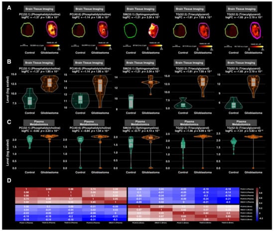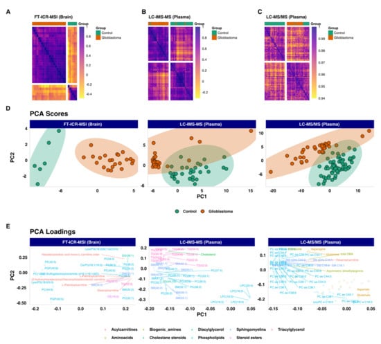 - Rogachev, A.; Alemasov, N.; Ivanisenko, V.; Ivanisenko, N.; Gaisler, E.; Oleshko, O.; Cheresiz, S.; Mishinov, S.; Stupak, V.; Pokrovsky, A. Correlation of Metabolic Profiles of Plasma and Cerebrospinal Fluid of High-Grade Glioma Patients. Metabolites 2021, 11, 133. [Google Scholar] [CrossRef] [PubMed]