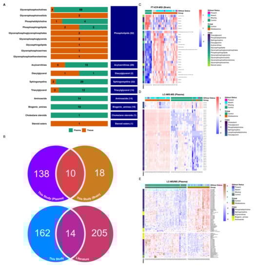 - Zhou, L.; Wang, Z.; Hu, C.; Zhang, C.; Kovatcheva-Datchary, P.; Yu, D.; Liu, S.; Ren, F.; Wang, X.; Li, Y.; et al. Integrated Metabolomics and Lipidomics Analyses Reveal Metabolic Reprogramming in Human Glioma with IDH1 Mutation. J. Proteome Res. 2018, 18, 960–969. [Google Scholar] [CrossRef]