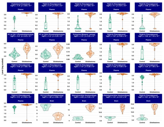 - Heiland, D.H.; Wörner, J.; Haaker, J.G.; Delev, D.; Pompe, N.; Mercas, B.; Franco, P.; Gäbelein, A.; Heynckes, S.; Pfeifer, D.; et al. The integrative metabolomic-transcriptomic landscape of glioblastome multiforme. Oncotarget 2017, 8, 49178–49190. [Google Scholar] [CrossRef] [PubMed][Green Version]