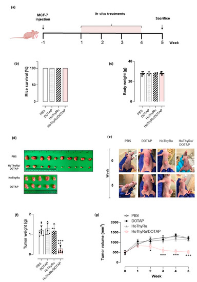 3.1. In Vivo Administration of HoThyRu/DOTAP Nanosystem Inhibits Tumour Growth and Proliferation