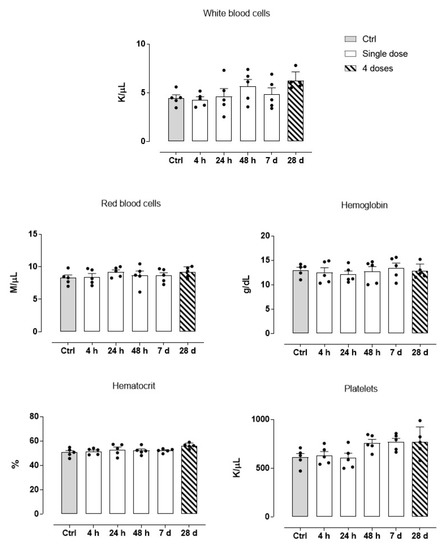 2.10. Blood Samples and Assessment of Biochemical and Hematological Parameters