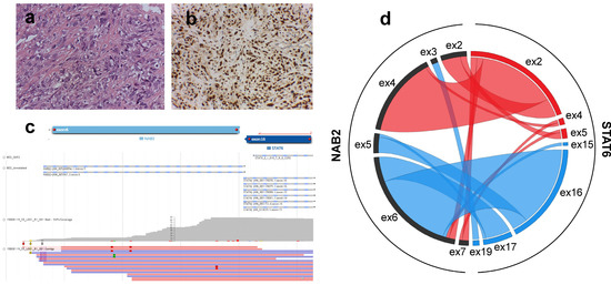 - Robinson, D.R.; Wu, Y.M.; Kalyana-Sundaram, S.; Cao, X.; Lonigro, R.J.; Sung, Y.S.; Chen, C.L.; Zhang, L.; Wang, R.; Su, F.; et al. Identification of recurrent NAB2-STAT6 gene fusions in solitary fibrous tumor by integrative sequencing. Nat. Genet. 2013, 45, 180–185. [Google Scholar] [CrossRef] [Green Version]