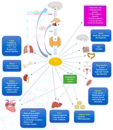 - Giammanco, M.; Di Liegro, C.M.; Schiera, G.; Di Liegro, I. Genomic and Non-Genomic Mechanisms of Action of Thyroid Hormones and Their Catabolite 3,5-Diiodo-L-Thyronine in Mammals. Int. J. Mol. Sci. 2020, 21, 4140. [Google Scholar] [CrossRef]