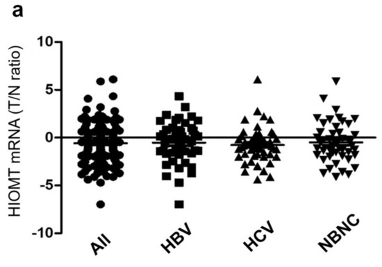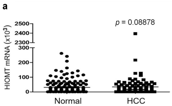 3.1. HIOMT mRNA Expression in HCC Tissues Is Correlated with Survival