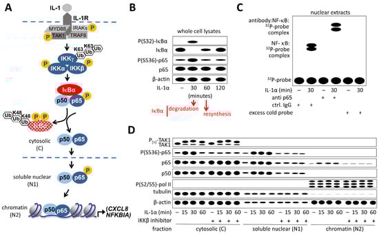 - Jurida, L.; Soelch, J.; Bartkuhn, M.; Handschick, K.; Muller, H.; Newel, D.; Weber, A.; Dittrich-Breiholz, O.; Schneider, H.; Bhuju, S.; et al. The Activation of IL-1-Induced Enhancers Depends on TAK1 Kinase Activity and NF-kappaB p65. Cell Rep. 2015, 10, 726–739. [Google Scholar] [CrossRef]