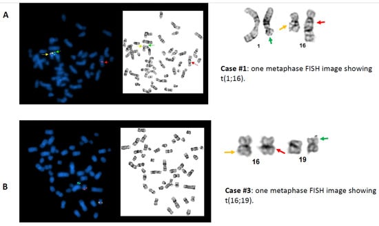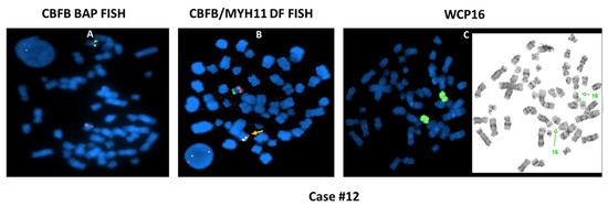 - Martinet, D.; Mühlematter, D.; Leeman, M.; Parlier, V.; Hess, U.; Gmür, J.; Jotterand, M. Detection of 16 p deletions by FISH in patients with inv(16) or t(16;16) and acute myeloid leukemia (AML). Leukemia 1997, 11, 964–970. [Google Scholar] [CrossRef][Green Version]