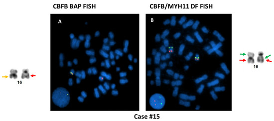 We searched the database of the Clinical Cytogenetics Laboratory in the Department of Hematopathology, The University of Texas MD Anderson Cancer Center, for CBFB BAP FISH tests performed from 1 June 2000 through 31 May 2021. The clinical, pathologic, and other laboratory information were collected through electronic medical chart review. This study was approved by Institutional Review Board (IRB) of MD Anderson Cancer Center and performed in accordance with the Declaration of Helsinki.