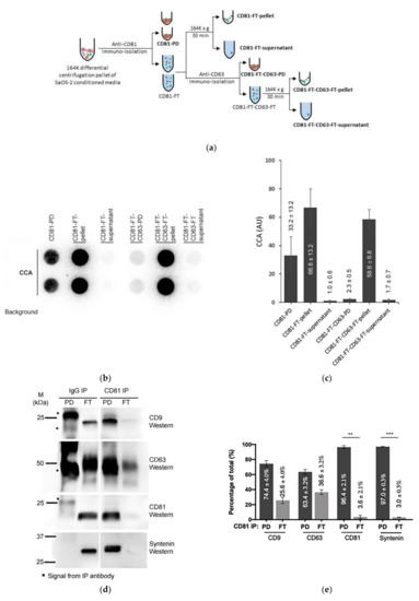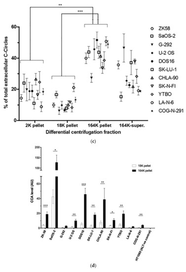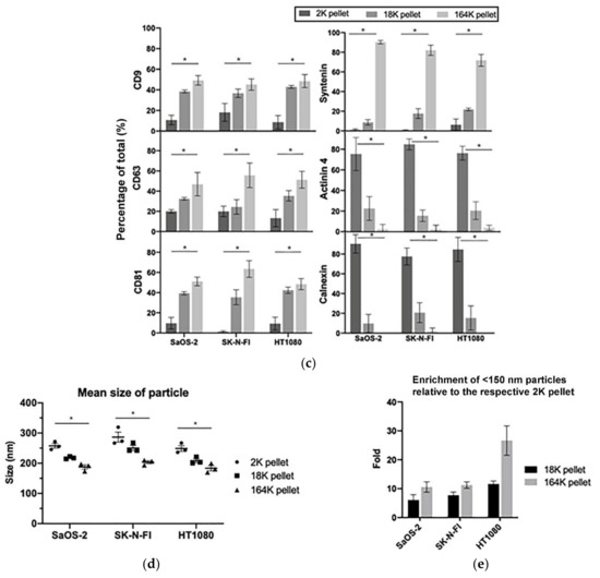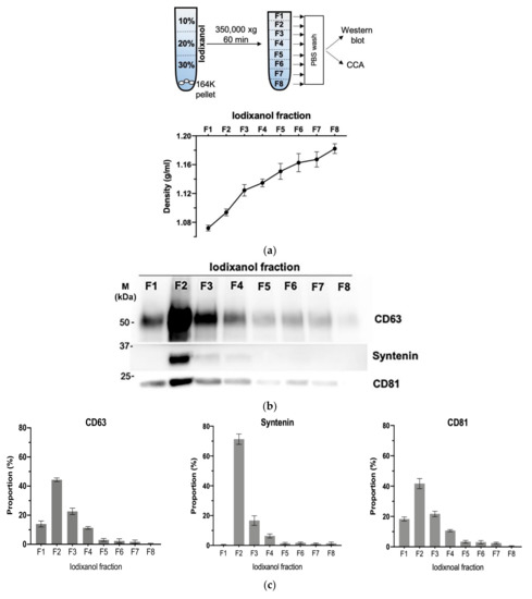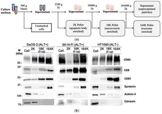- Jeppesen, D.K.; Hvam, M.L.; Primdahl-Bengtson, B.; Boysen, A.T.; Whitehead, B.; Dyrskjot, L.; Orntoft, T.F.; Howard, K.A.; Ostenfeld, M.S. Comparative analysis of discrete exosome fractions obtained by differential centrifugation. J. Extracell Vesicles 2014, 3, 25011. [Google Scholar] [CrossRef] [Green Version]