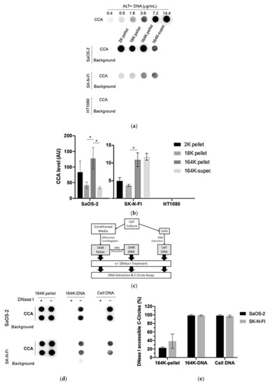 - Henson, J.D.; Cao, Y.; Huschtscha, L.I.; Chang, A.C.; Au, A.Y.; Pickett, H.A.; Reddel, R.R. DNA C-circles are specific and quantifiable markers of alternative-lengthening-of-telomeres activity. Nat. Biotechnol. 2009, 27, 1181–1185. [Google Scholar] [CrossRef] [PubMed]