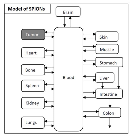 - Klapproth, A.P.; Shevtsov, M.; Stangl, S.; Li, W.B.; Multhoff, G. A new pharmacokinetic model describing the biodistribution of intravenously and intratumorally administered superparamagnetic iron oxide nanoparticles (SPIONs) in a GL261 xenograft glioblastoma model. Int. J. Nanomed. 2020, 15, 4677–4689. [Google Scholar] [CrossRef] [PubMed]