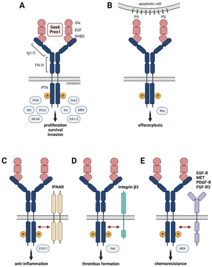 - Hafizi, S.; Dahlback, B. Gas6 and protein S. Vitamin K-dependent ligands for the Axl receptor tyrosine kinase subfamily. FEBS J. 2006, 273, 5231–5244. [Google Scholar] [CrossRef]
