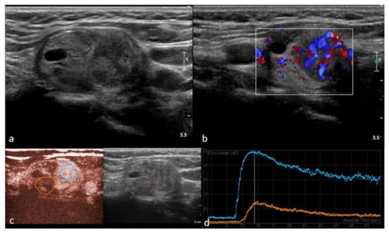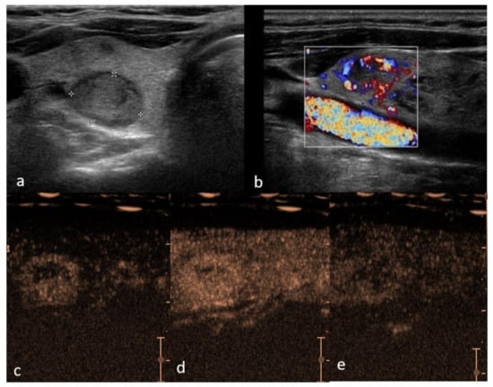 - Hornung, M.; Jung, E.M.; Georgieva, M.; Schlitt, H.J.; Stroszczynski, C.; Agha, A. Detection of Microvascularization of Thyroid Carcinomas Using Linear High Resolution Contrast-Enhanced Ultrasonography (CEUS). Clin. Hemorheol. Microcirc. 2012, 52, 197–203. [Google Scholar] [CrossRef]