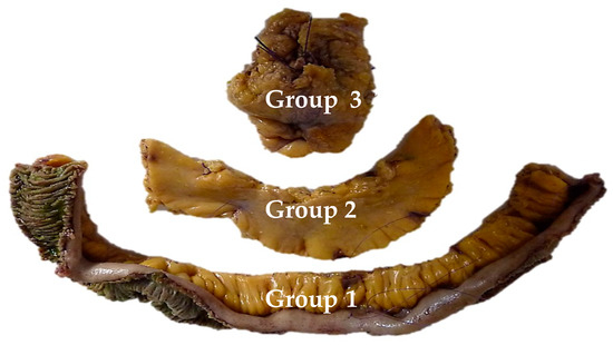 The definition of an extensive lymph node dissection is still debated. However, complications related to the mesenteric mass appear when the compression is proximal, either by further progression or by lymph node recurrence. Three lymph node groups have been described: group 1 in contact with the small bowel, group 2 in the middle of the mesentery, and group 3 at the origin of the mesenteric vessels under the pancreatic uncus. In the cohort of Pasquer et al. [24], the phenomenon of skip metastases was objectified (Figure 3). This nodal bypass corresponds to an involvement of the proximal lymph nodes (i.e., groups 2 and 3) while the lymph nodes in contact with the intestine (group 1) are not invaded. This phenomenon appeared in 66% of patients. These data published in 2016 were updated locally in 2019, finding those skip metastases in 69% of cases, but not published.