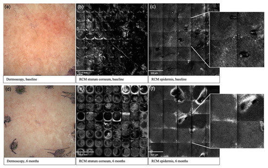 - Benati, E.; Longhitano, S.; Pampena, R.; Mirra, M.; Raucci, M.; Pellacani, G.; Longo, C. Digital Follow-up by Means of Dermatoscopy and Reflectance Confocal Microscopy of Actinic Keratosis Treated with Imiquimod 3.75% Cream. J. Eur. Acad. Dermatol. Venereol. 2020, 34, 1471–1477. [Google Scholar] [CrossRef]