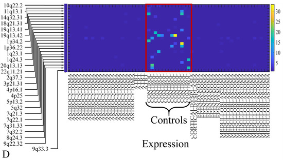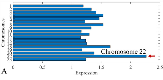 DEGs were further analyzed for common expression patterns using classification methods. To gain further insight into the gene expression data, we used unsupervised hierarchical clustering (HCL) and k-means classification [54,55]. HCL with dendrogram, was used and correlations were calculated with Euclidean distance. K-means classification [54,55] was recently reported as one of the best performing clustering approaches for microarray class discovery studies [56]. We applied the squared Euclidean as a distance measure, since it is generally considered to be a more appropriate measure for use with k-means and found to outperform for ratio-based measurements [57]. We used 100 iterations and the optimal cluster number for the k-means algorithm was estimated using the Calinski–Harabasz criterion. Complete k-means clusters, centroids, and sorted centroids [58] were utilized. The DE miRNAs/mRNAs, were also classified based on their diagnosis categorical variable. In particular, the mean values of all samples with respect to the diagnosis was estimated and the resulting descriptive statistical measure was utilized for further k-means classification. Gene expression was also analyzed with respect to the chromosomal distribution of the DE miRNAs/mRNAs. We explored the mean expression per chromosome and heat-maps of chromosomal-related expression. Unsupervised classification methods have been performed with the Matlab® computational environment (The Mathworks, Inc., The Natick, MA, USA).