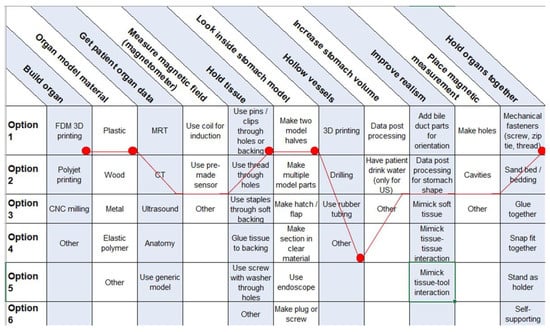 The interdisciplinary work of endoscopists, surgeons and radiologists on the one hand, and the mechanical engineers and physicists on the other hand, not only made this work possible, but also broadened the scope beyond the specific research question. By use of open-source software, the detailed description of the work steps, and including different requirements in the morphologic box, it is highly applicable to other research questions. This is in line with our subsidiary goal of developing a transferable method for 3D-printed replicas from individual patient data, which can easily be learned by inexperienced students within a short time. Three endoscopists performed a gastroscopy with the model and found it feasible. Nonetheless, this experience could be improved further as the internal surface of the prototype was only manually and rudimentarily processed. Further investigations need to address this aspect by the use of abrasive or chemical machining, as previously discussed for additively manufactured metal implants [].