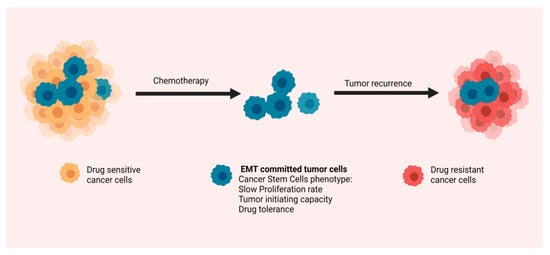 EMT and chemoresistance: Tumor cells undergoing EMT acquire a number of features associated with a cancer stem cell phenotype, which make them intrinsically tolerant to chemotherapy. They are therefore capable of surviving drug exposure and form a new tumor, leading to disease recurrence.