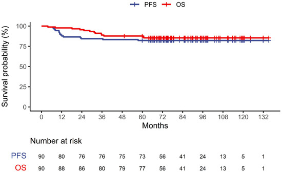 - Kim, K.H.; Lee, J.; Chang, J.S.; Lee, C.G.; Yun, M.; Choi, E.C.; Kim, S.H.; Keum, K.C. Prognostic value of FDG-PET volumetric parameters in patients with p16-positive oropharyngeal squamous cell carcinoma who received curative resection followed by postoperative radiotherapy or chemoradiotherapy. Head Neck 2016, 38, 1515–1524. [Google Scholar] [CrossRef]