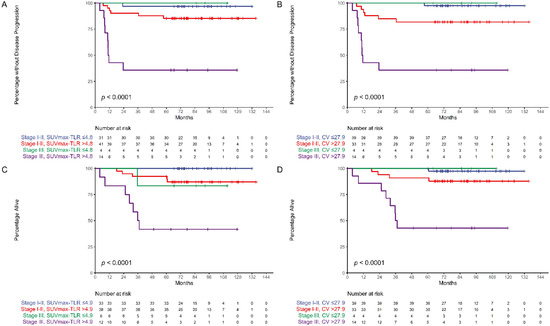 3.2. Prognostic Values of Clinical Parameters and Metabolic Parameters of F-18 FDG PET/CT