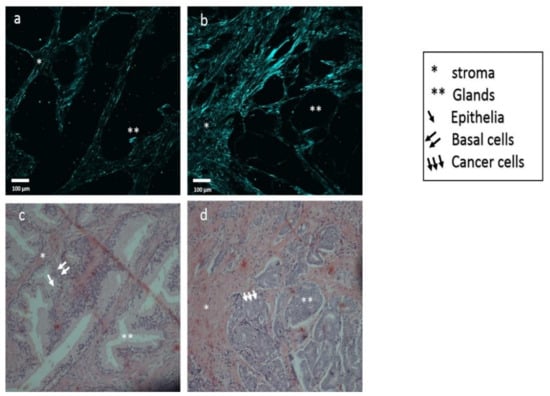 - Ling, Y.; Li, C.; Feng, K.; Palmer, S.; Appleton, P.L.; Lang, S.; McGloin, D.; Huang, Z.; Nabi, G. Second harmonic generation (SHG) imaging of cancer heterogeneity in ultrasound guided biopsies of prostate in men suspected with prostate cancer. J. Biophotonics 2017, 10, 911–918. [Google Scholar] [CrossRef]