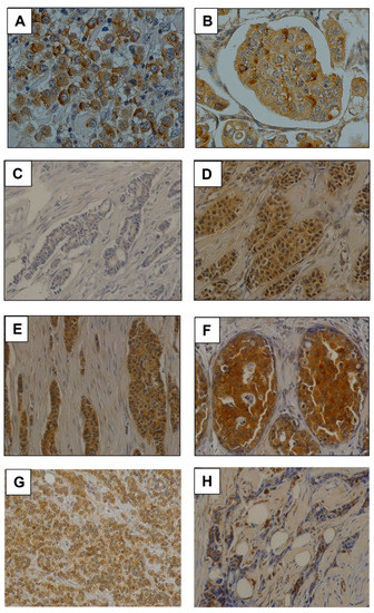 - Ronchi, A.; Pagliuca, F.; Zito Marino, F.; Accardo, M.; Cozzolino, I.; Franco, R. Current and potential immunohistochemical biomarkers for prognosis and therapeutic stratification of breast carcinoma. Semin. Cancer Biol. 2021, 72, 114–122. [Google Scholar] [CrossRef]