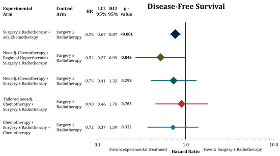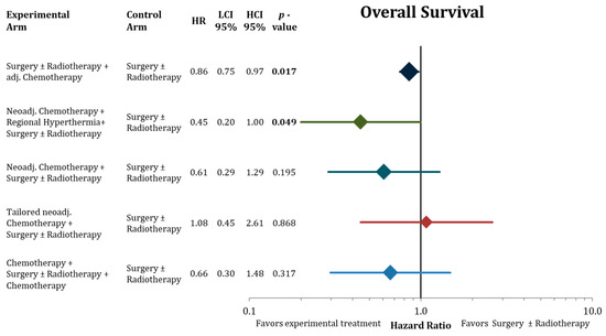 Haussmann, J.; Matuschek, C.; Bölke, E.; Tamaskovics, B.; Corradini, S.; Wessalowski, R.; Maas, K.; Schmidt, L.; Orth, K.; Peiper, M.; et al. Comparison of Different Systemic Therapeutic Regimes in Resectable Soft-Tissue Sarcoma—Results of a Network Meta-Analysis. Cancers 2021, 13, 5631. https://doi.org/10.3390/cancers13225631