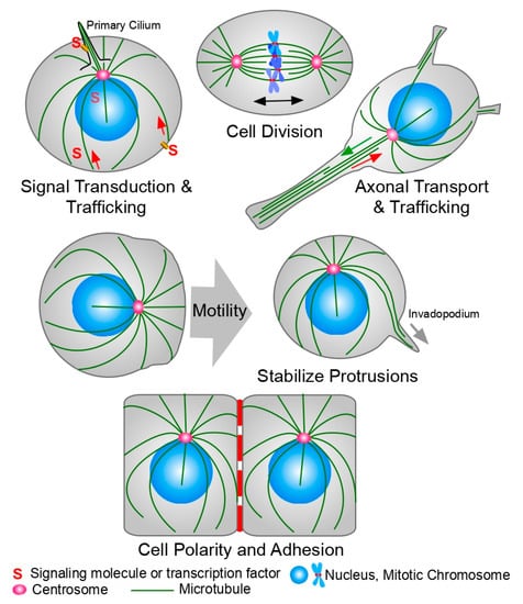 - Bouchet, B.P.; Akhmanova, A. Microtubules in 3D Cell Motility. J. Cell Sci. 2017, 130, 39–50. [Google Scholar] [CrossRef] [PubMed]