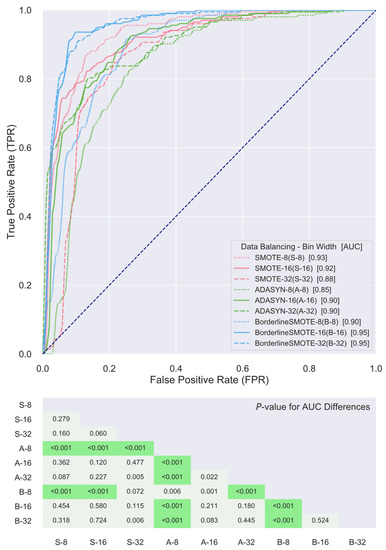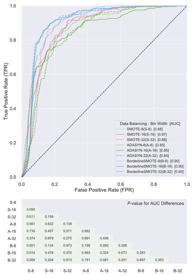 - Han, H.; Wang, W.-Y.; Mao, B.-H. Borderline-SMOTE: A new over-sampling method in imbalanced data sets learning. In Proceedings of the International Conference on Intelligent Computing; Springer: Berlin/Heidelberg, Germany, 2005; pp. 878–887. [Google Scholar]