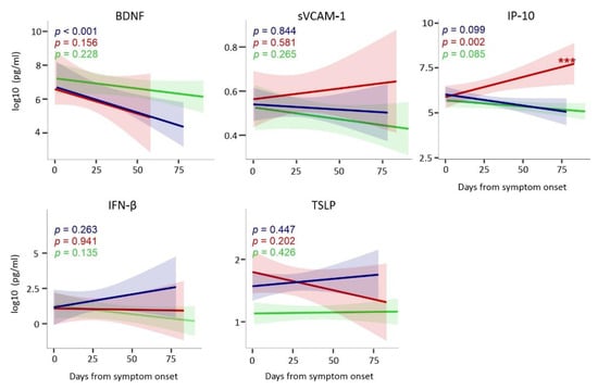 - Yang, Y.; Shen, C.; Li, J.; Yuan, J.; Wei, J.; Huang, F.; Wang, F.; Li, G.; Li, Y.; Xing, L.; et al. Plasma IP-10 and MCP-3 levels are highly associated with disease severity and predict the progression of COVID-19. J. Allergy Clin. Immunol. 2020, 146, 119–127.e114. [Google Scholar] [CrossRef]
