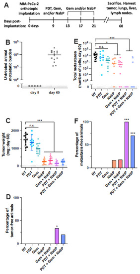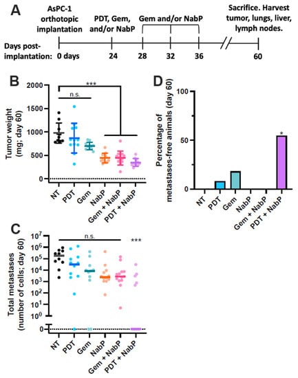 3.1. PDT + Nab-Paclitaxel/Gemcitabine Completely Inhibits the Metastatic Potential of Early-Stage PDAC