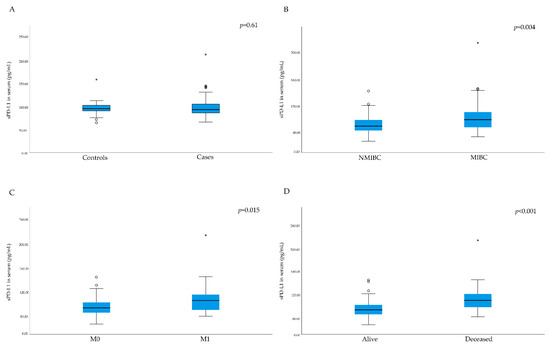 - Krafft, U.; Olah, C.; Reis, H.; Kesch, C.; Darr, C.; Grünwald, V.; Tschirdewahn, S.; Hadaschik, B.; Horvath, O.; Kenessey, I.; et al. High Serum PD-L1 Levels Are Associated with Poor Survival in Urothelial Cancer Patients Treated with Chemotherapy and Immune Checkpoint Inhibitor Therapy. Cancers 2021, 13, 2548. [Google Scholar] [CrossRef]