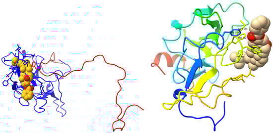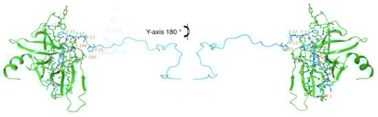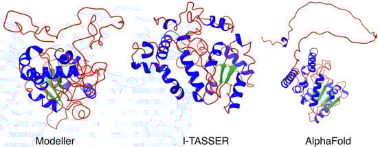- Jumper, J.; Evans, R.; Pritzel, A.; Green, T.; Figurnov, M.; Ronneberger, O.; Tunyasuvunakool, K.; Bates, R.; Žídek, A.; Potapenko, A.; et al. Highly accurate protein structure prediction with AlphaFold. Nature 2021, 596, 583–589. [Google Scholar] [CrossRef]
