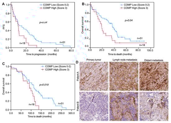 3.3. Correlations of S-COMP Levels and Comp IHC Expression in Distant Metastases