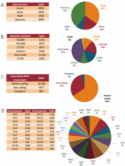 3.1. Methylation Array and Associated Bioinformatics: General Distribution of Differentially Methylated Sites between Coding, Non-Coding, and Intergenic Regions