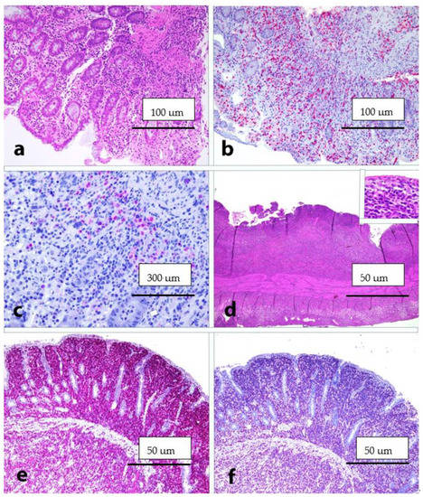 - Liu, R.; Wang, M.; Zhang, L.; Zhou, W.; Huang, Y.; Guo, H.; Gu, Y.; Chen, Y.; Li, Y.; Chen, C.; et al. The clinicopathologic features of chronic active Epstein-Barr virus infective enteritis. Mod. Pathol. 2019, 32, 387–395. [Google Scholar] [CrossRef]