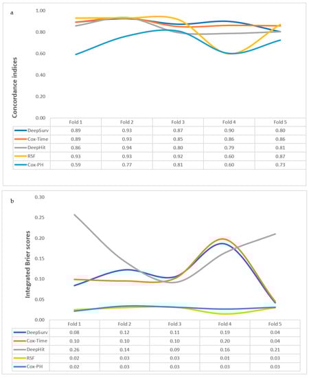 - Adeoye, J.; Hui, L.; Koohi-Moghadam, M.; Tan, J.Y.; Choi, S.-W.; Thomson, P. Comparison of time-to-event machine learning models in predicting oral cavity cancer prognosis. Int. J. Med. Inform. 2021, 157, 104635. [Google Scholar] [CrossRef] [PubMed]