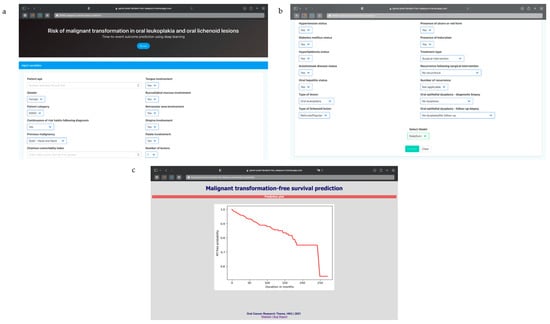 - Wang, X.; Yang, J.; Wei, C.; Zhou, G.; Wu, L.; Gao, Q.; He, X.; Shi, J.; Mei, Y.; Liu, Y.; et al. A personalized computational model predicts cancer risk level of oral potentially malignant disorders and its web application for promotion of non-invasive screening. J. Oral Pathol. Med. 2020, 49, 417–426. [Google Scholar] [CrossRef]