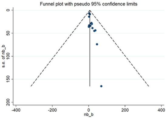 Publication bias was evaluated using a funnel plot (Figure 6). The 15 studies included in the analysis had little publication bias. This finding was confirmed with the results from Egger’s test (p = 0.810).