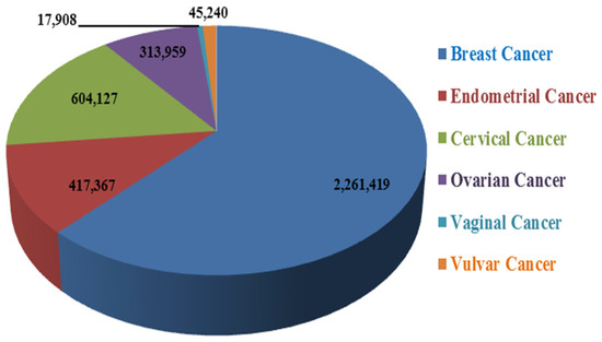 Worldwide, cancer is considered one of the most common causes of death in females. According to WHO statistics, the incidence of breast cancer is much higher than any other women’s cancer. However, they are spreading with increased rates day by day (Figure 1). The determination and early detection of cancer and the discovery of new and more effective treatment strategies might help control morbidity and mortality rates.
