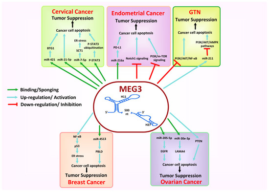 - Sun, K.-X.; Wu, D.-D.; Chen, S.; Zhao, Y.; Zong, Z.-H. LncRNA MEG3 inhibit endometrial carcinoma tumorigenesis and progression through PI3K pathway. Apoptosis 2017, 22, 1543–1552. [Google Scholar] [CrossRef]