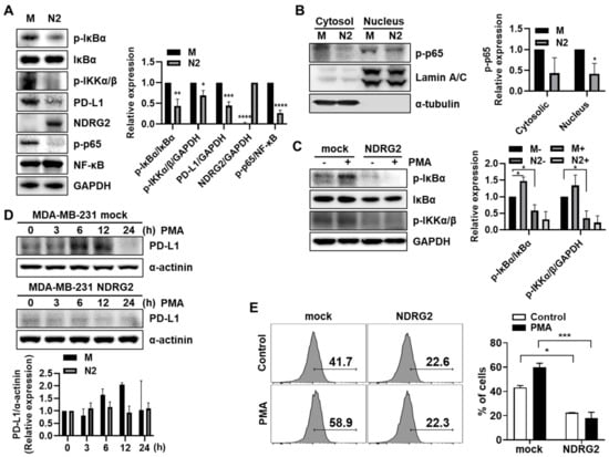 3.2. NDRG2 Downregulates PD-L1 Expression through NF-κB Signaling