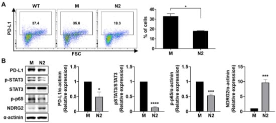 3.3. PD-L1 Expression Is Suppressed by NDRG2 Overexpression in Mouse 4T1 Mammary Tumor Cells
