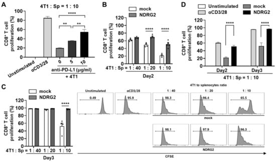 Lee, A.; Lim, S.; Oh, J.; Lim, J.; Yang, Y.; Lee, M.-S.; Lim, J.-S. NDRG2 Expression in Breast Cancer Cells Downregulates PD-L1 Expression and Restores T Cell Proliferation in Tumor-Coculture. Cancers 2021, 13, 6112. https://doi.org/10.3390/cancers13236112
