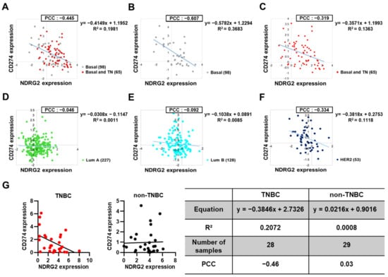 3.6. PD-L1 Expression in Basal or Triple-Negative Breast Cancer Tissues Is Inversely Correlated with NDRG2 Expression Levels